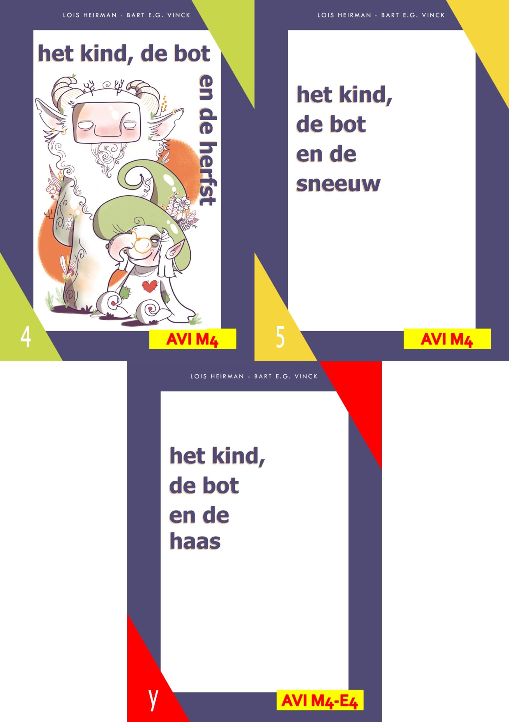 Het Groeipakket het kind en de bot bestaat uit één gedrukt exemplaar van het vierde en vijfde leesboekje uit de reeks (het kind, de bot en de herfst ; het kind, de bot en de sneeuw ) en van het tweede toneelstukje (het kind, de bot en de haas ), drie boekjes in totaal dus.