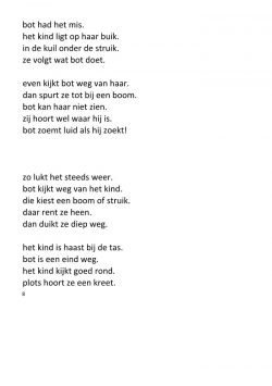 In dit tweede deel uit de reeks schommelt de zinslengte doorgaans tussen vier en vijf woorden. De hele tekst telt in totaal ruim 1200 woorden. Van de driehonderd verschillende woorden kan er al eens eentje meer dan één lettergreep tellen. Nagenoeg alle tweeklanken komen aan bod net als de meeste combinaties van dubbele medeklinkers, zowel vooraan als achteraan het woord. Een opeenvolging van drie medeklinkers blijft in dit boekje uitzonderlijk.