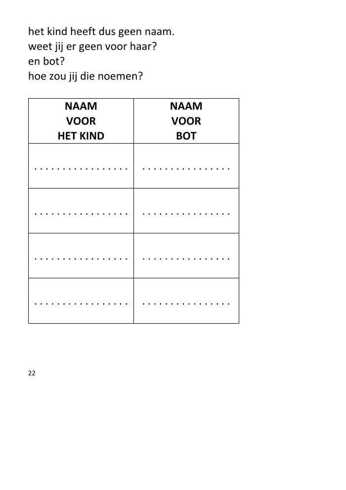 De reeks het kind en de bot bestaat uit acht uniform opgezette geïllustreerde verhalen en drie toneelstukjes. Qua leesbaarheid c.q. begrijpelijkheid klimmen de teksten op van niveau AVI START tot AVI E5 terwijl ook de globale CLIB-score en partiële indicatoren over de reeks op een gecontroleerde manier opschuiven in de richting van toenemende moeilijkheidsgraad.
